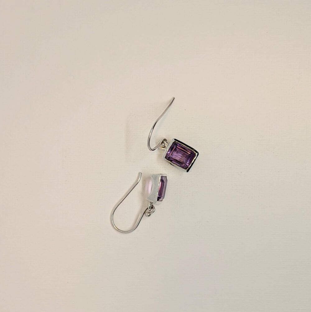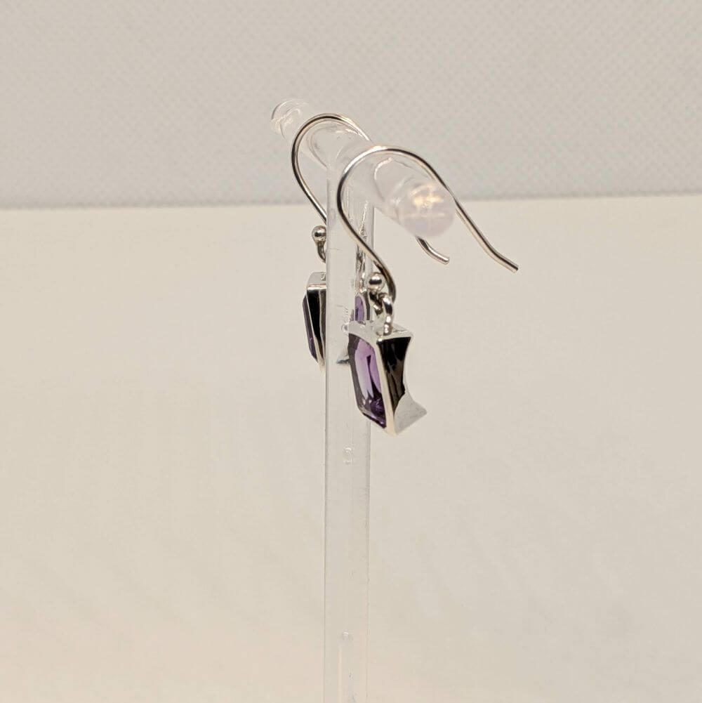 Elegant rectangular‑cut faceted amethyst drops set in sterling silver