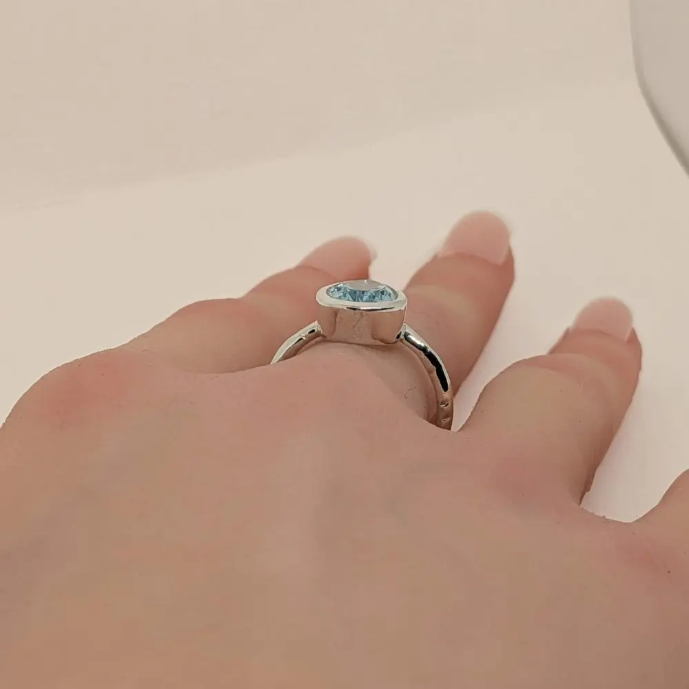 - Wear with care — blue topaz is a durable gemstone but can still be scratched by harder stones. Avoid knocks, pressure, or wearing during heavy activity.