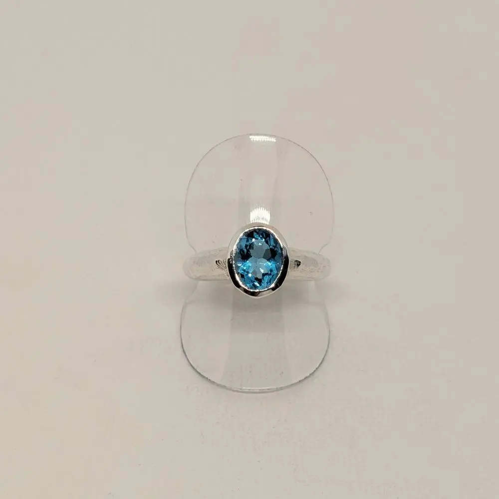 London Blue Topaz Oval Ring with Raised Band – Sizes – 7 – 8 – 9